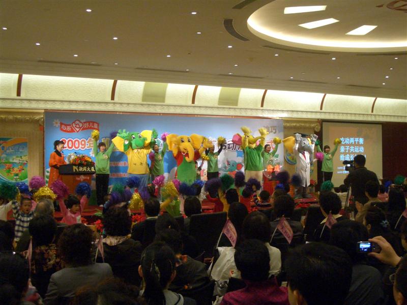 “吃动两平衡 亲子共运动 给成长加油”是2009年度儿童运动健康家庭教育活动的口号,本次活动的形象标志“迪宝宝一家”与象博士也来到了现场,和来宾们一起互动。在“迪宝宝一家”的带领下,全场来宾一同站起来,共同来做运动亲子操!