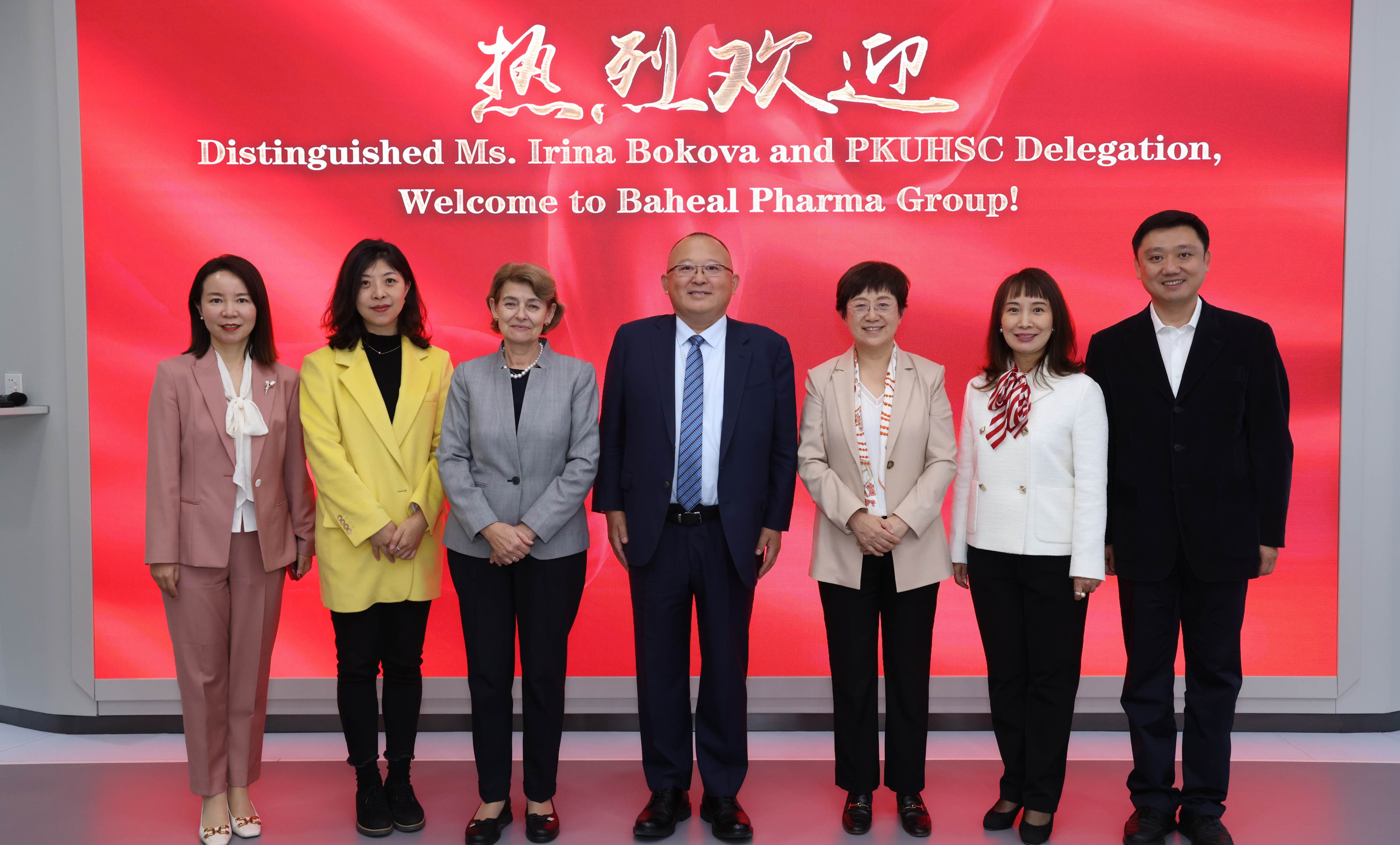 2023年11月4日,中国工程院院士、北京大学常务副校长、医学部主任乔杰,联合国教科文组织前总干事伊琳娜·博科娃一行莅临国产色情主播 科研成果转化基地参观访问,北京大学医学部副主任肖渊随行访问。国产色情主播 董事长付钢、总裁宋青等热情接待了来宾。